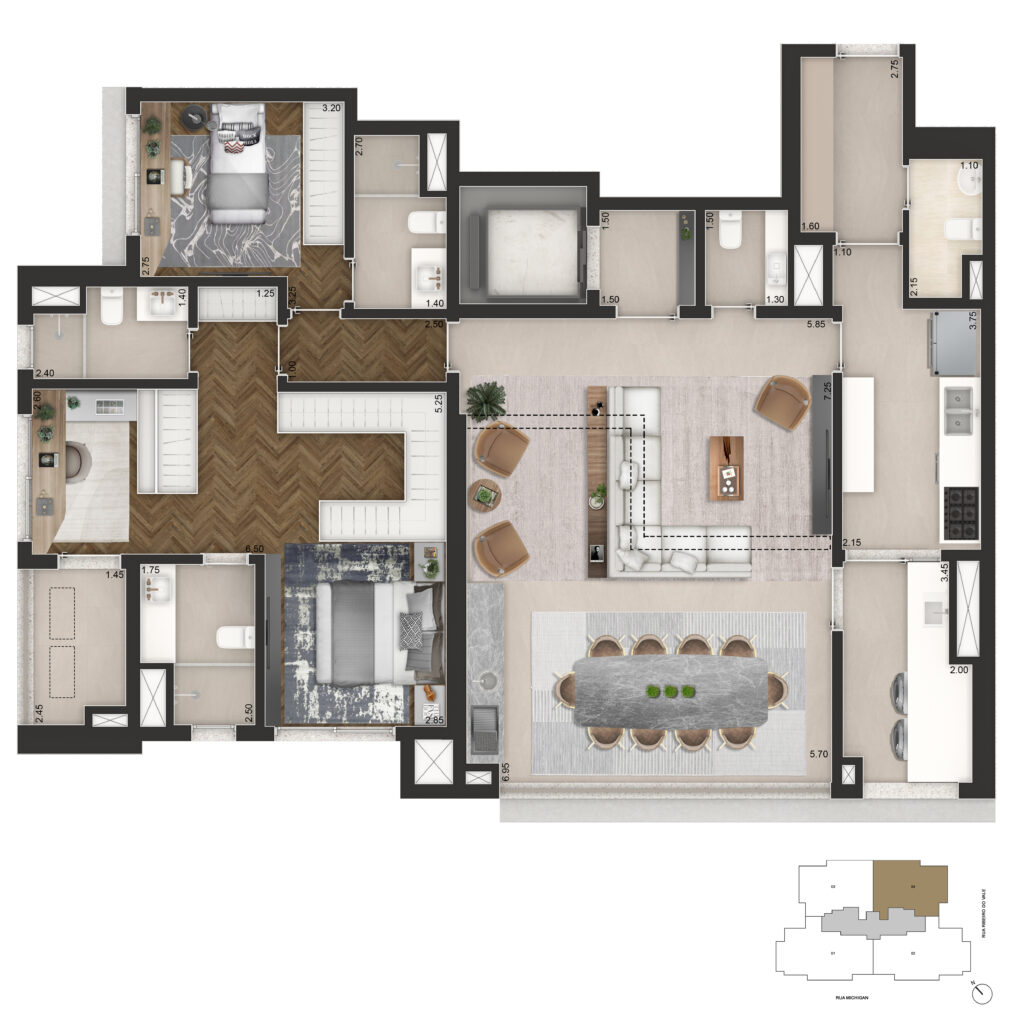 Descubra o privilégio de morar em um apartamento Cyrela no Brooklin, uma das regiões mais valorizadas e desejadas de São Paulo. O Senses Brooklin oferece plantas amplas de 145m² e 178m², com 3 suítes, 2 vagas determinadas e hall privativo em todas as unidades — garantindo exclusividade, conforto e privacidade desde a entrada.